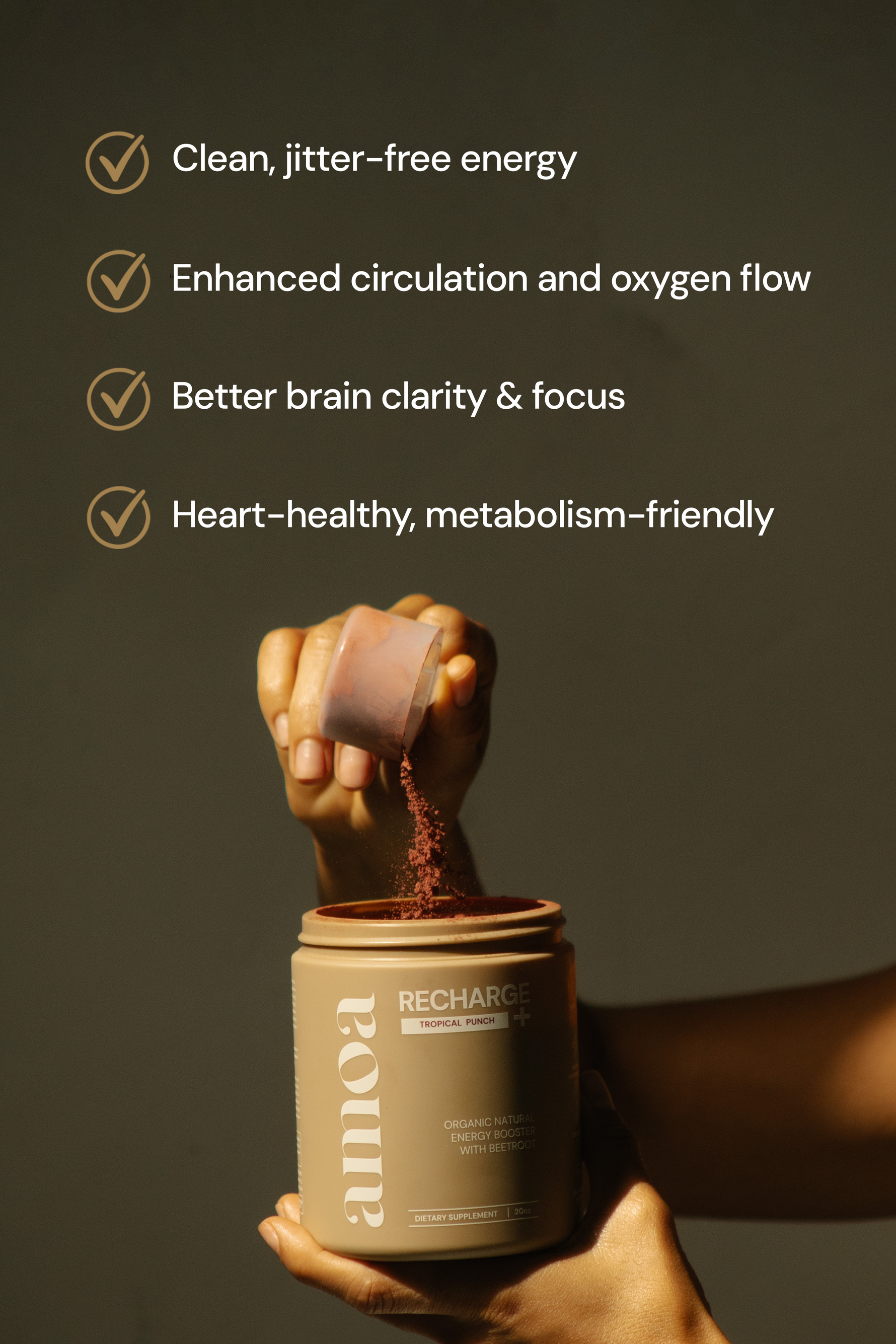 Perfect for pre-workout support, midday focus, or morning rituals, Recharge+ gives your body what it needs to feel alert, strong, and ready without synthetic stimulants.